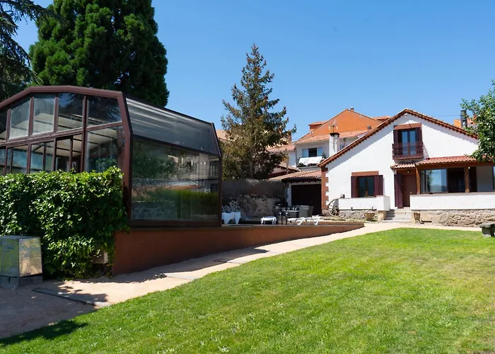 Located a mere 1.3 km from Parque de Recreo Natural La Panera, the 3-bedroom Un Paseo Por Las Nubes boasts an outdoor pool area with a Jacuzzi. Featuring a terrace, this El Espinar villa is situated at a moderate distance from Iglesia de San Eutropio.